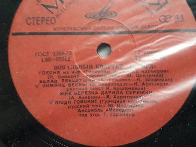 Пластинка Вокальный квартет ''Аккорд'' - ТЫ и Я * Яблоки зеленые * Люди говорят * Белая лебедушка
