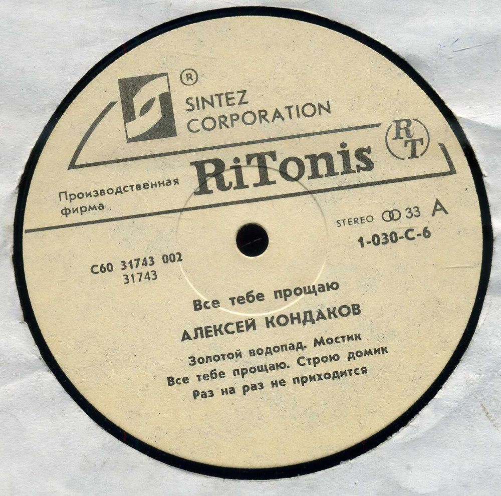Алексей Кондаков – Все Тебе Прощаю LP / RiTonis – С60 31743 002 / USSR 1991