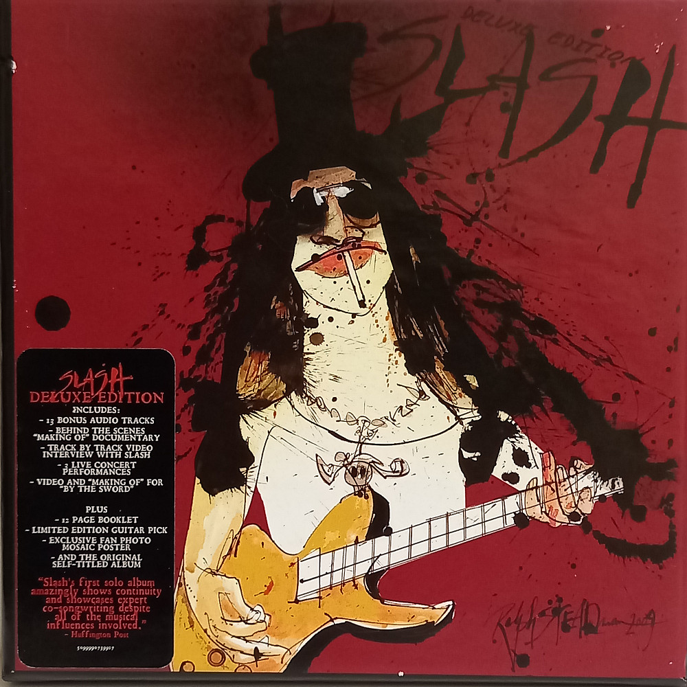 The idea for SLASH Deluxe Edition came about from Slash himself as a way to take fans on a journey of the start-to-finish process of making his first solo album. Comprised of everything from the earliest demos conceptualizing his album all the way through to live video footage from the album release secret show performance at the famed Roxy, this Deluxe Edition features new content any fan would want to experience. SLASH DELUXE EDITION: 2010 US limited edition 3-disc set of the first solo album from the acclaimed guitarist featuring guest apperances from Ian Astbury, Lemmy Kilminster, Chris Cornell, Duff McKagan, Adam Levine, Myles Kennedy, Andrew Stockdale, M Shadows, Dave Grohl, Ozzy Osbourne, Iggy Pop, Fergie and more. This edition comprises of the 14-track album, 2nd disc of 13-bonus tracks including demos and live records including a great acoustic version of 'Sweet Child Of Mine' and Nightrain both featuring Myles Kennedy on vocals, plus NTSC DVD featuring videos, live footage and documentary.