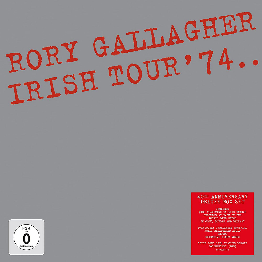 IRISH TOUR ’74 is the sixth album by Rory Gallagher. It is a live album compiled from performances during Gallagher's Irish Tour in January 1974. The source concerts were recorded at Belfast Ulster Hall, Dublin Carlton Cinema and Cork City Hall using Ronnie Lane's Mobile Studio. IRISH TOUR ’74..: 40th Anniversary Expanded Deluxe Edition release of one of Rory Gallagher's most celebrated recordings. The most expansive edition to date, of this landmark album. Featured for the FIRST TIME on record, all three shows. Packaged in a special deluxe edition 7 X CD / DVD box-set it includes many previously unreleased tracks, re-mastered audio, photos, extensive liner notes, memorabilia and more plus on DVD the Tony Palmer directed documentary IRISH TOUR ’74.