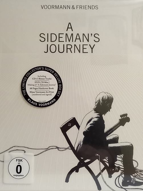 A SIDEMAN’S JOURNEY: The Limited Collector’s Super Deluxe Box Set hand signed by Klaus. Limited edition hand signed art print already contained in the set. Double Grammy winner Klaus Voormann has not only left his mark on musical history as a bass player but has also set some milestones as a graphic designer. His name conjures up revolutionary moments in pop history, in the music world as well as in the cover-artwork scene. A SIDEMAN’S JOURNEY is the outcome of seven studio sessions in London, Memphis, Hamburg, Los Angeles, Munich and Paul McCartney’s studio The Mill together with best of international session musicians and many stars. The bonus DVD Making Of A Sideman’s Journey carries the viewer into the center of the action. This DVD is a powerful and passionate documentary showing how this audio-visual work of art came into being. This unique product contains three bonus songs compared to the standard CD and vinyl, a DVD with the documentary Making Of A Sideman's Journey (running time 70 minutes) documenting the making of the album. In addition, the individually numbered box set includes an art print hand-signed by Voormann and a hardcover hardback book with 68 pages.