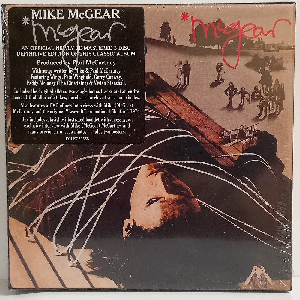 Originally released in 1974, *McGEAR was the second solo album by Mike McGear (McCartney) and was a more “serious” record than his work with the Liverpool satirical trio Scaffold, or his work with Roger McGough on the “McGough & McGear” album. Recorded at Strawberry studios in Stockport, (the musical home of the band 10cc), the album was produced by PAUL McCARTNEY (who also played on the album and co-wrote most of the material with Mike) and featured LINDA McCARTNEY and members of WINGS, along with guests such as PADDY (“Pipes”) MOLONEY of The Chieftains. The album featured a selection of tremendous songs such as ‘Rainbow Lady’, ‘Simply Love You’, ‘Givin’ Grease a Ride’ and ‘The Man Who Found God on the Moon’. *McGEAR also featured an inspired cover of the Roxy Music song ‘Sea Breezes’, the evocative ‘The Casket’ and the hit single ‘Leave It’. The sessions also spawned a non-album single; ‘Dance the Do’ (which featured Vivian Stanshall). *McGEAR was charming, eccentric and unique in equal measure and was one of the great unsung albums of its time. Now acclaimed, but unavailable on CD for over twenty years, this long awaited expanded three disc edition reissue of *McGEAR has been compiled with the full involvement of Mike (McGear) McCartney and has been newly re-mastered from the original master tapes. It has an additional 21 bonus tracks, including 13 previously unreleased out-takes and tracks alongside singles appearing on CD for the first time. The set also includes a DVD featuring Mike (McGear) McCartney reminiscing at the Liverpool Institute of Performing Arts, an interview with Mike at the Everyman Theatre in Liverpool and the 1974 promotional film for the single ‘Leave It’. The set also includes an illustrated booklet with new essay and a poster and is a fine tribute to the eccentric genius of *McGEAR.
