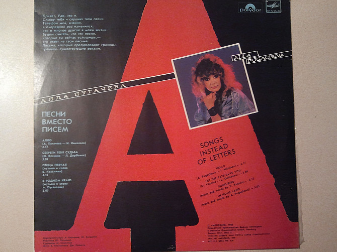 Алла Пугачёва и Удо Линденберг. " Песни вместо писем ". Состояние - новая.
