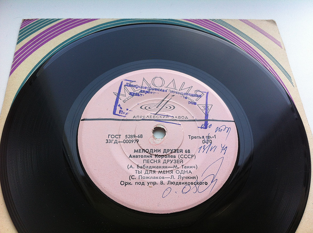 Пластинка-флекси МЕЛОДИИ ДРУЗЕЙ-68 - Анатолий Королев - ПЕСНЯ ДРУЗЕЙ * Ты для меня одна * Крыши (Ех)