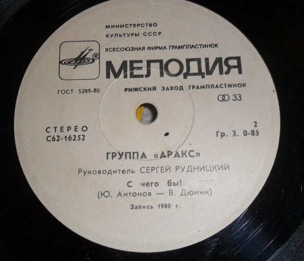 1981 год, 7", 33 ⅓ RPM, Stereo, состояние ЕХ, техконверт.