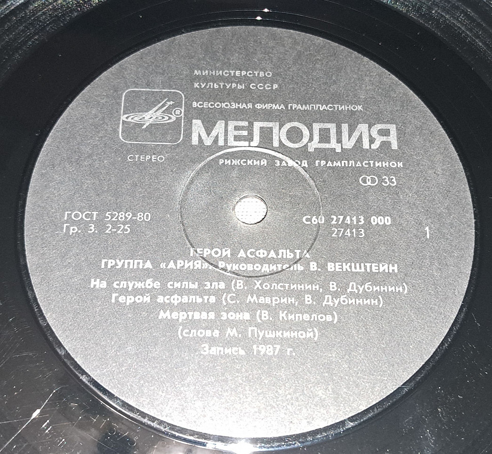 Ария – Герой Асфальта LP / Мелодия – С60 27413 000 / USSR 1988