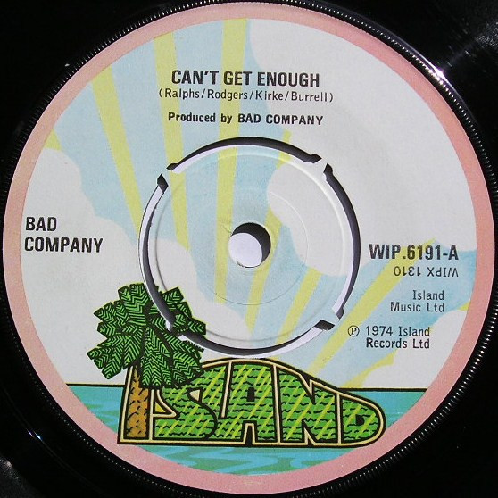 Bad Company – Can't Get Enough / Little Miss Fortune (Island Records – WIP.6191, 7", 45 rpm, single, UK, 1974).