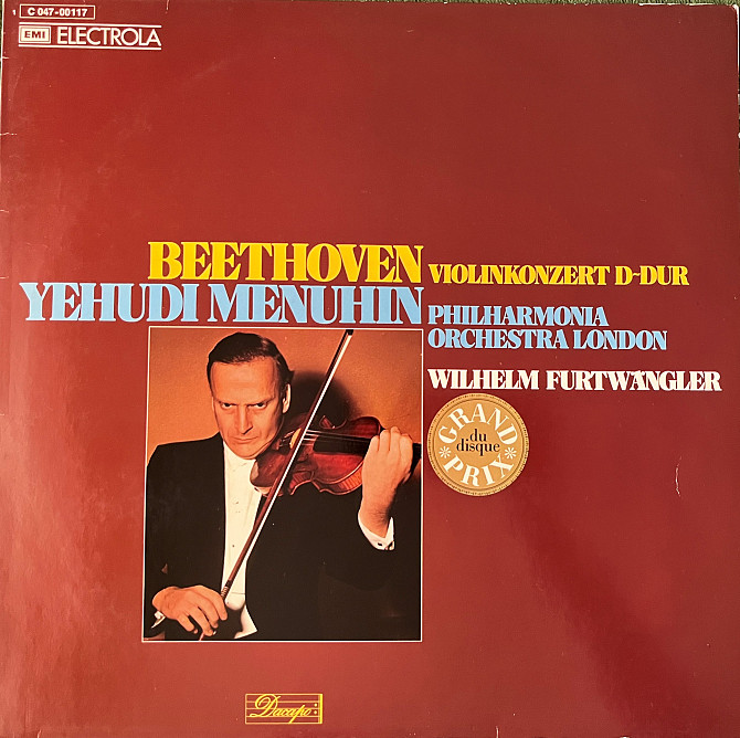 Beethoven - Yehudi Menuhin, Philharmonia Orchestra London, Wilhelm Furtwängler – Violinkonzert D-Dur. Концерт для скрипки з оркестром D-Dur Бетховена, виконує відомий американський скрипаль Єгуді Менухін. Платівка лейблу EMI Electrola (Німеччина), стан - Ex.
