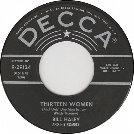 Bill Haley And His Comets – Thirteen Women / (We're Gonna) Rock Around The Clock (Decca – 9-29124, 7", 45 rpm, single, Gloversville pressing, USA, 1954).