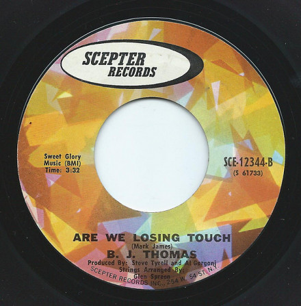 B.J. Thomas – Rock And Roll Lullaby / Are We Losing Touch (Scepter Records – SCE-12344, 7", 45 rpm, single, styrene, Pitman pressing, USA, 1972).