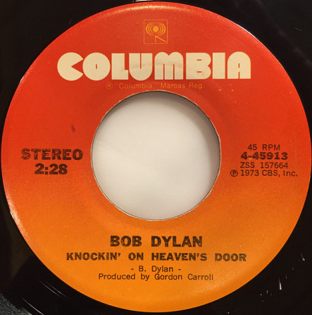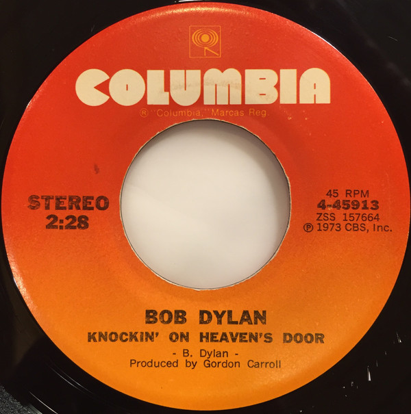 Bob Dylan – Knockin' On Heaven's Door / Turkey Chase (Columbia – 4-45913, 7", 45 rpm, single, Santa Maria pressing, USA, 1973).