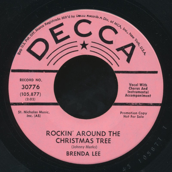 Brenda Lee – Rockin' Around The Christmas Tree / Papa Noel (Decca – 9-30776, 7", 45 rpm, promo, USA, 1958).