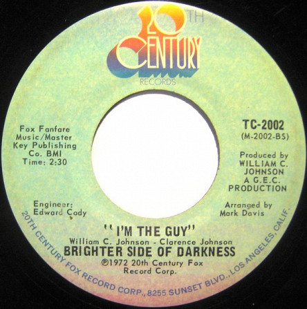 Brighter Side Of Darkness – Love Jones / I'm The Guy (20th Century Records – TC-2002, 7", 45 rpm, single, USA, 1972).