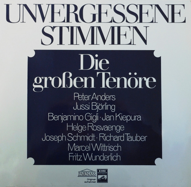 Peter Anders, Jussi Björling, Jan Kiepura, Richard Tauber, Marcel Wittrisch, Fritz Wunderlich, Joseph Schmidt, Helge Rosvaenge, Beniamino Gigli.