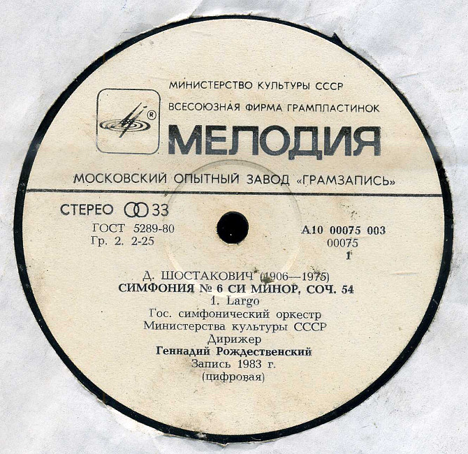 Д. ШОСТАКОВИЧ СИМФОНИЯ №6 си минор, соч. 54 А10 00075_76 USSR