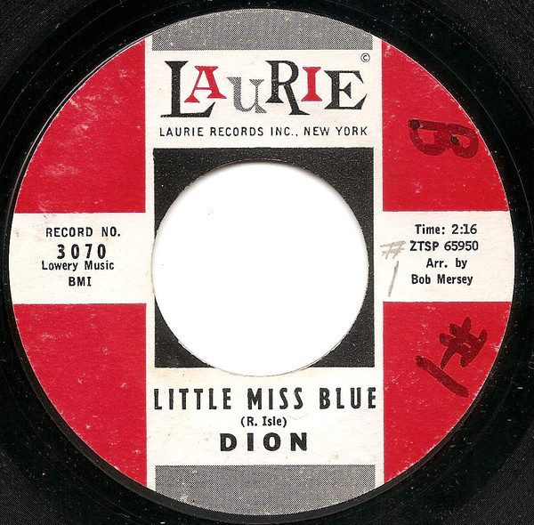 Dion – Little Miss Blue / Lonely Teenager (Laurie Records – 3070, 7", 45 rpm, single, Bridgeport pressing, USA, 1960).