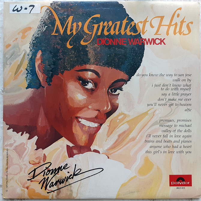 Оригинальная фирменная виниловая пластинка. Сборный студийный каталожный альбом из лучших хитов Американской фанк соул певицы Dionne Warwick - My Greatest Hits - 1963-75. Выпущено фирмой (Polydor) Canada в 1975-ом году. Оригинальное Канадское издание. Состояние пластинки ЕХ+. Конверт глянцевый. Состояние конверта EX+. Отправляем Новой Почтой, Деливери, Укр Почтой /Предоплата/ (На выбор покупателя), возможна отправка за границу.