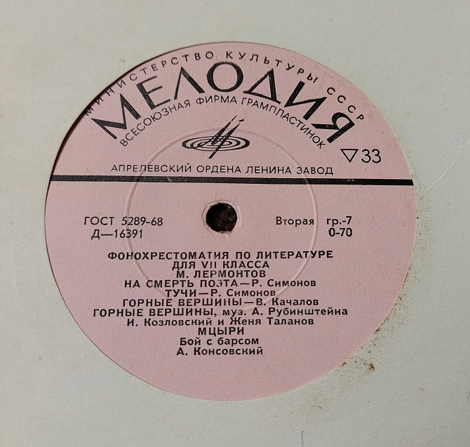 Фонохрестоматия по литературе.7 кл.М.Лермонтов