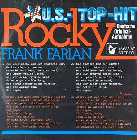 Frank Farian – «Rocky» 7", 45 RPM, Single
