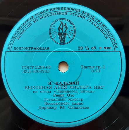 Арія та пісня з оперет композитора Імре Кальмана у вконанні Георга Отса. Міньйон 1961 року випуску (Апрелевский завод). Стан - VG+.
