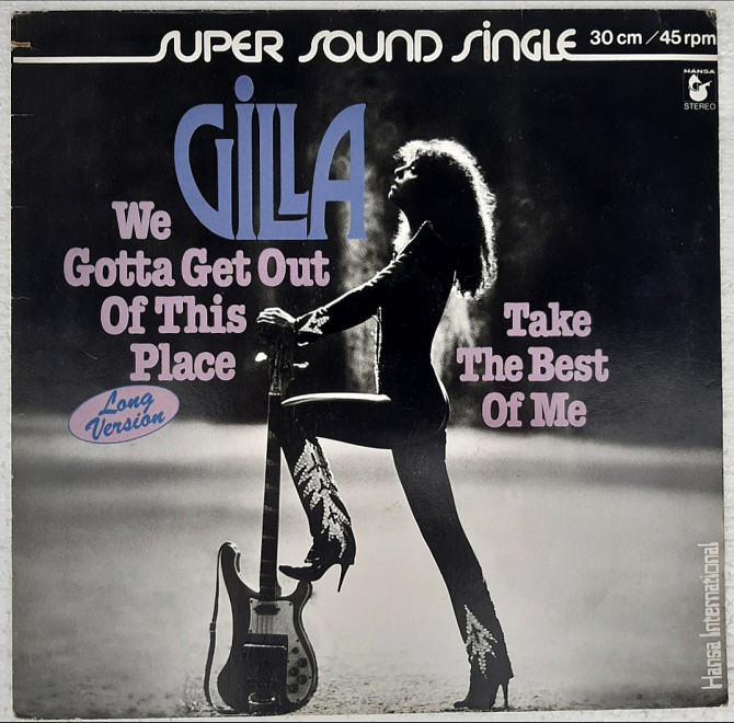 Вінілова платівка. Тринадцятий, в дискографії, студійний максі сингл (ЕР 12), Австрійської виконавиці стилю диско, фанк, соул, Гізелі Вухінгер, більше відомої під сценічним ім,ям Джилла / Гілла (We Gotta Get Out Of This Place / Take The Best Of Me) 1979. Випуск фірми (Hansa International) Germany, 1979-ий рік. Оригінальне, першопресове, Німецьке видання. Стан платівки VG+. Стан конверту ЕХ+. В комплекті внутрішня рекламна вставка від фірми Hansa. Відправка по Україні службами доставки: Нова Пошта, Укр Пошта, Делівері. Також відправляємо посилки за кордон по цілому світу.