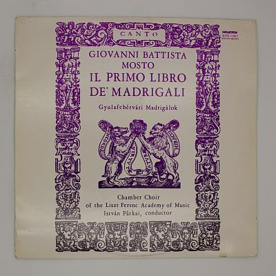 Giovanni Battista Mosto – Il Primo Libro De' Madrigali A Sei Voci - Gyulafehérvári Madrigálok