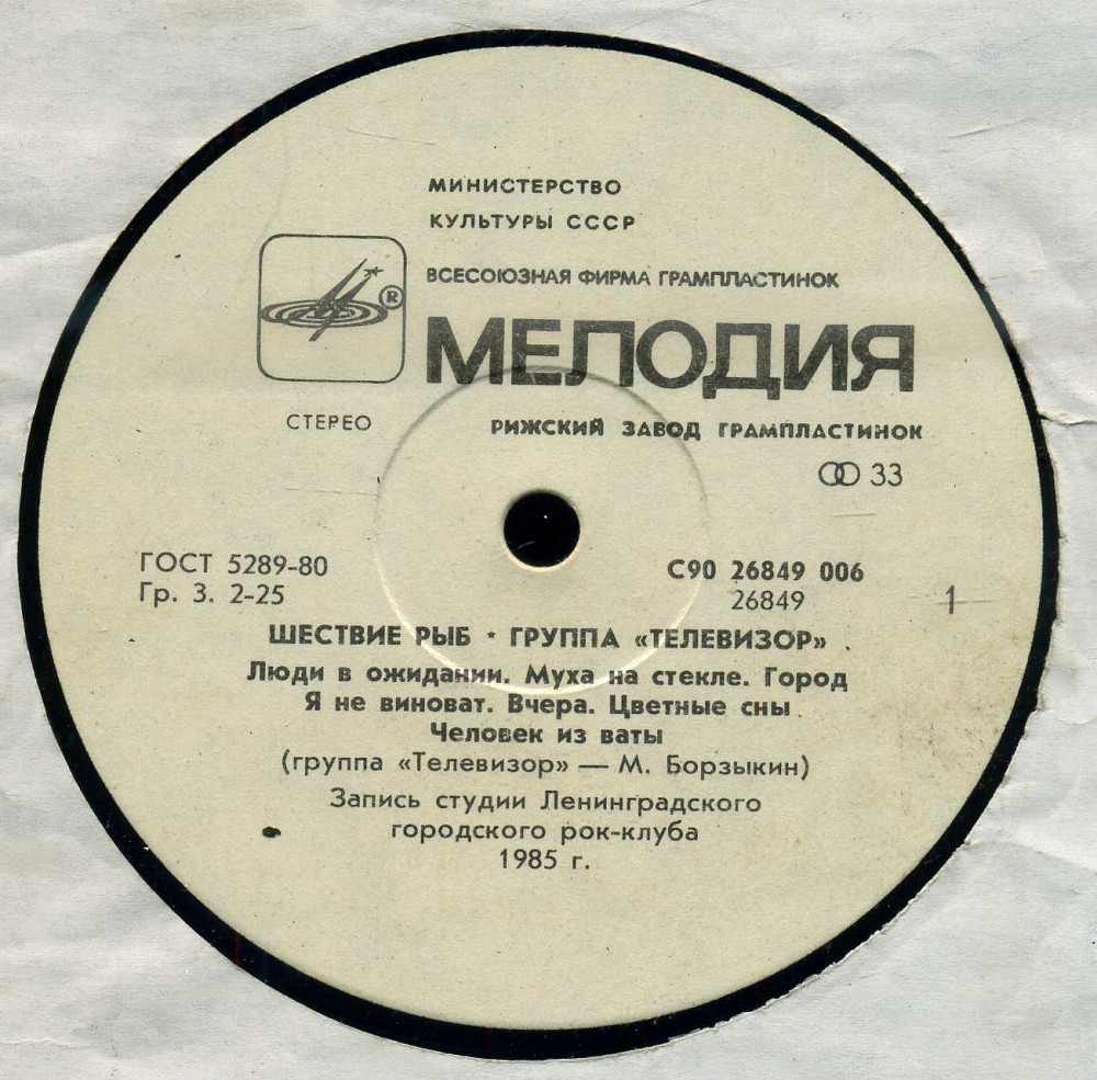 Группа ТЕЛЕВИЗОР - Шествие рыб С90 26849_50 USSR 1985