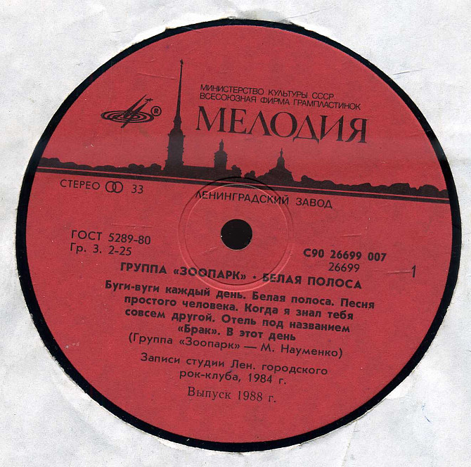 ГРУППА ЗООПАРК - БЕЛАЯ ПОЛОСА С90 26699_700 USSR 1988