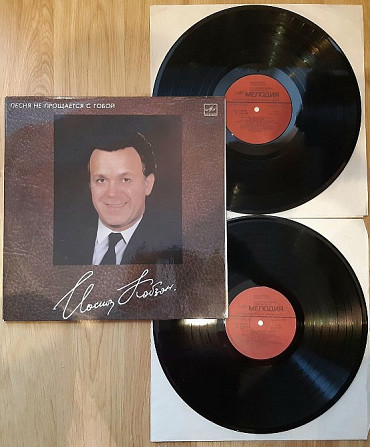 Оригинальные виниловые пластинки. Семнадцатый, по счету, студийный альбом на долго играющих пластинках, легендарного Иосифа Кобзона (Песня Не Прощается С Тобой) 1987. Выпущено фирмой (Мелодия) СССР, заводом грампластинок Апрелевского Ордена Ленина в 1987-ом году. Издание из двух пластинок (2LP). Лимитированый тираж (Limited Edition) 15 000 копий. Редкое издание (Rare). Пластинки в отличном состоянии, относятся к категории NM. Конверт-разворотный, ламинированый. Состояние конверта NM. Отличное качество стерео звука, оригинальная обложка, цветная полиграфия. Отправляю Новой Почтой, Деливери, Ин Тайм, Укр Почтой /Предоплата/ (На выбор покупателя), возможна отправка за границу.