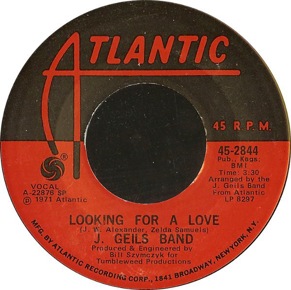 ,J. Geils Band – Looking For A Love / Whammer Jammer (Atlantic – 45-2844, 7", 45 rpm, single, Specialty pressing, USA, 1971).