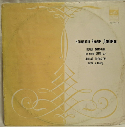 Вінілова платівка. Студійний альбом видатного Українського (радянського) диригента, композитора та громадського діяча, Народного артиста УРСР, Лауреата Державної премії України імені Тараса Григоровича Шевченка, Члена Спілки композиторів України, покійного вже, Климентія Яковича Домінчена та Державного Заслуженого Симфонічного Оркестру Українського Радіо, диригентом якого був, на той час, Вадим Гнєдаш (Перша Симфонія Ре Мінор Та Сюїта з Балету Співає Трембіта) 1940. Випуск фірми (Мелодія) СРСР, Апрелєвський завод грамплатівок, 1973-ій рік. Оригінальне, першопресове видання. Лімітований тираж (Limited Edition). Рідкісне (Rare). Стан платівки ЕХ+. Стан конверту ЕХ. Відправка по Україні службами доставки: Нова Пошта, Укр Пошта, Делівері. Також відправляємо посилки за кордон по цілому світу.
