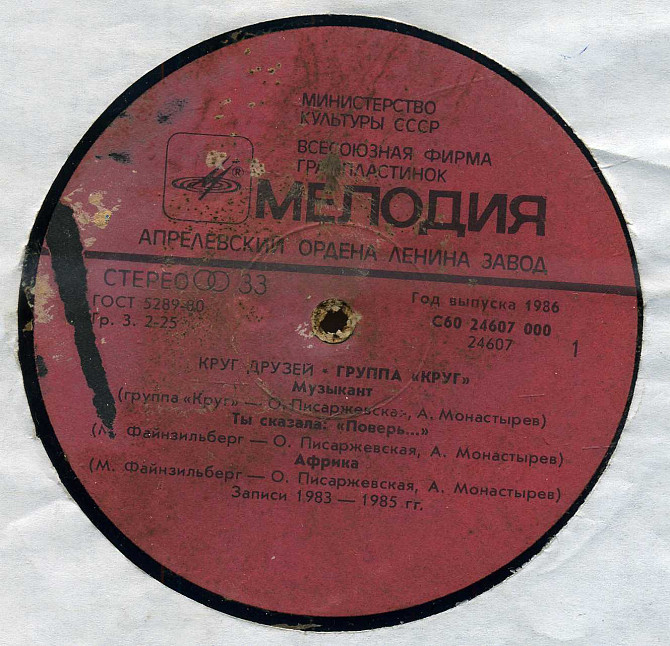 КРУГ ДРУЗЕЙ - ГРУППА КРУГ С60 24607_08 USSR 1986