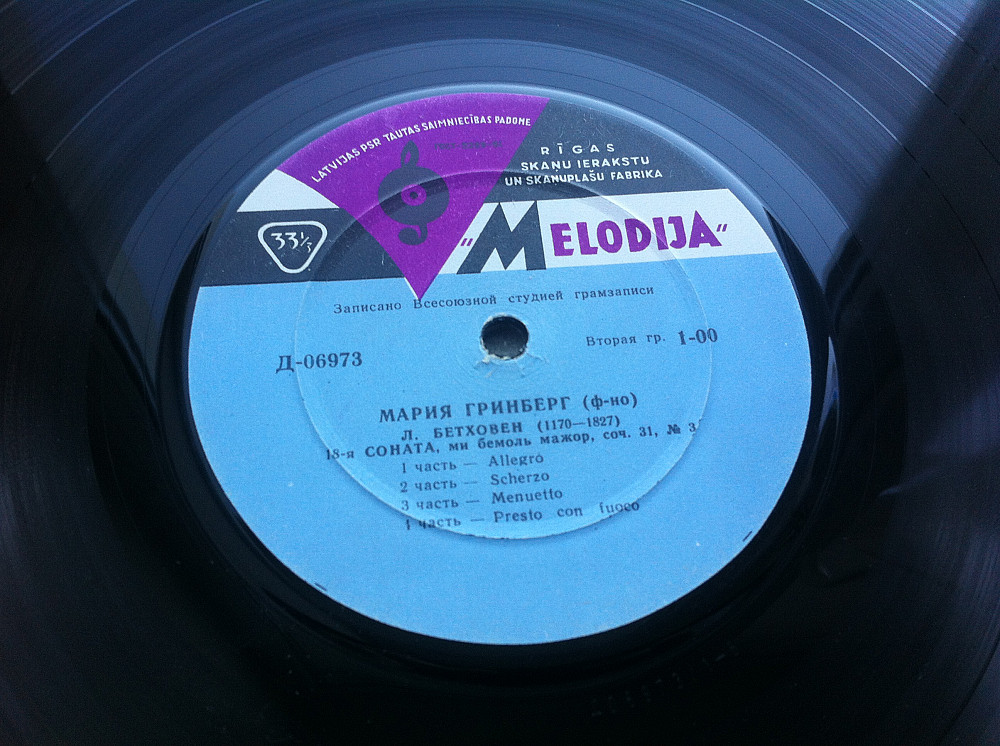 Пластинка Мария Гринберг - Л. Бетховен – 8-я СОНАТА (Патетическая) соч. 13, до минор (1952) Ех