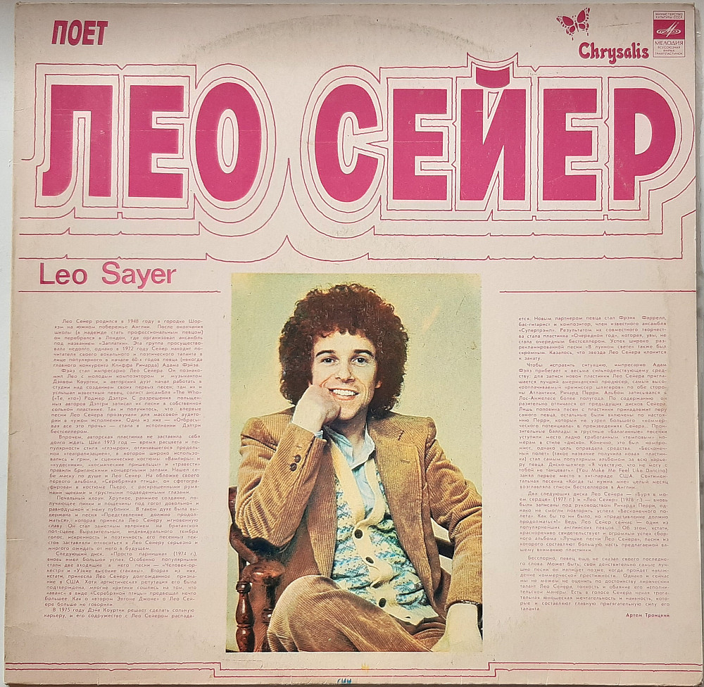 Платівка англійського виконавця Лео Сейєра. Ліцензійне видання 1979 року, фірма "Мелодія" (Апрелевский завод грампластинок). Стан - NM.