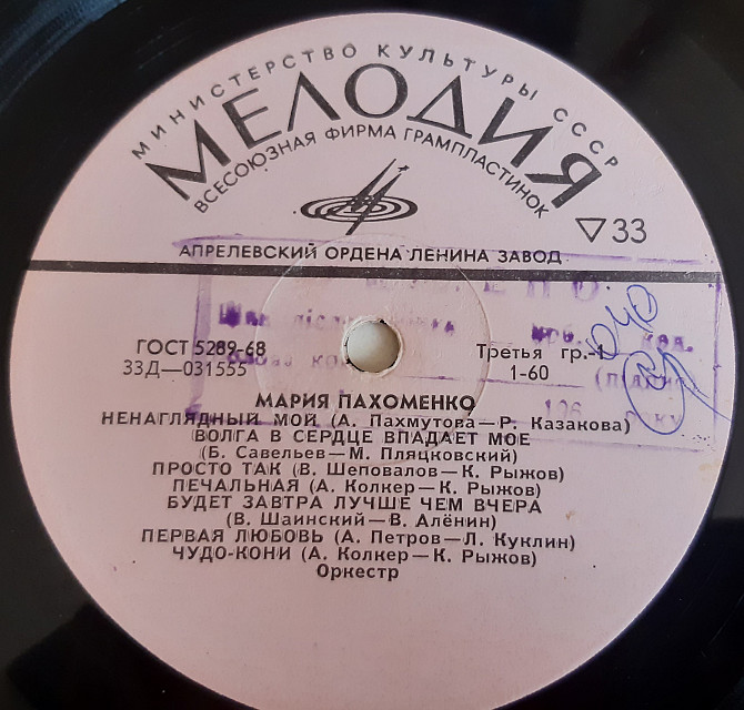 Альбом співачки Марії Пахоменко 1971 року, платівка у техконверті. Фірма Мелодія (Апрелевский завод грампластинок), стан - VG.