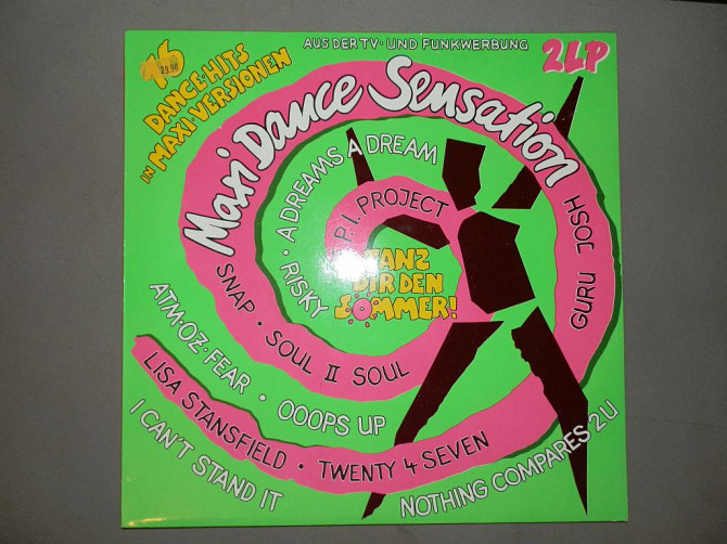 Продаётся сборник из 2 пластинок Maxi Dance Sensation - Snap, Bizz Nizz, Twenty 4 Seven, Lisa Stansfield, Sandra, Chyp-Notic, Fri Project, Guru Josh, Cozm*Oz*One, Adamski... , 2 × Vinyl, LP, Compilation. Выпуск Ariola ‎– 303 865. (1990). Пластинки куплены в Германии, в хорошем состоянии, относятся к категории NM/NM.