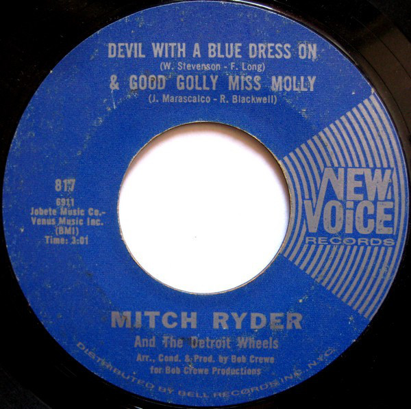 Mitch Ryder And The Detroit Wheels ‎– Devil With A Blue Dress On & Good Golly Miss Molly / I Had It Made (New Voice Records ‎– 817, 7", 45 rpm, single, styrene, Monarch pressing, USA, 1966).