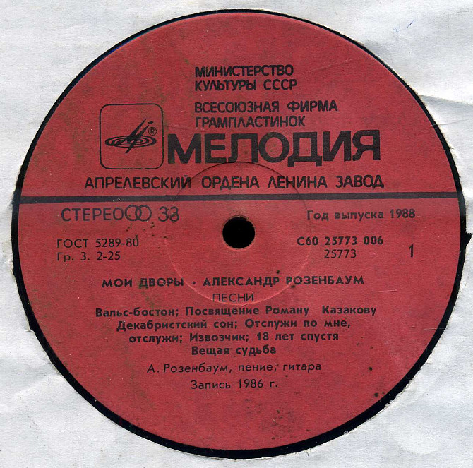 МОИ ДВОРЫ - АЛЕКСАНДР РОЗЕНБАУМ ПЕСНИ С6025773-74 USSR 1988