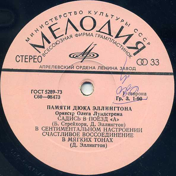 ОРКЕСТР ОЛЕГА ЛУНДСТРЕМА «Памяти Дюка Эллингтона» ℗1977