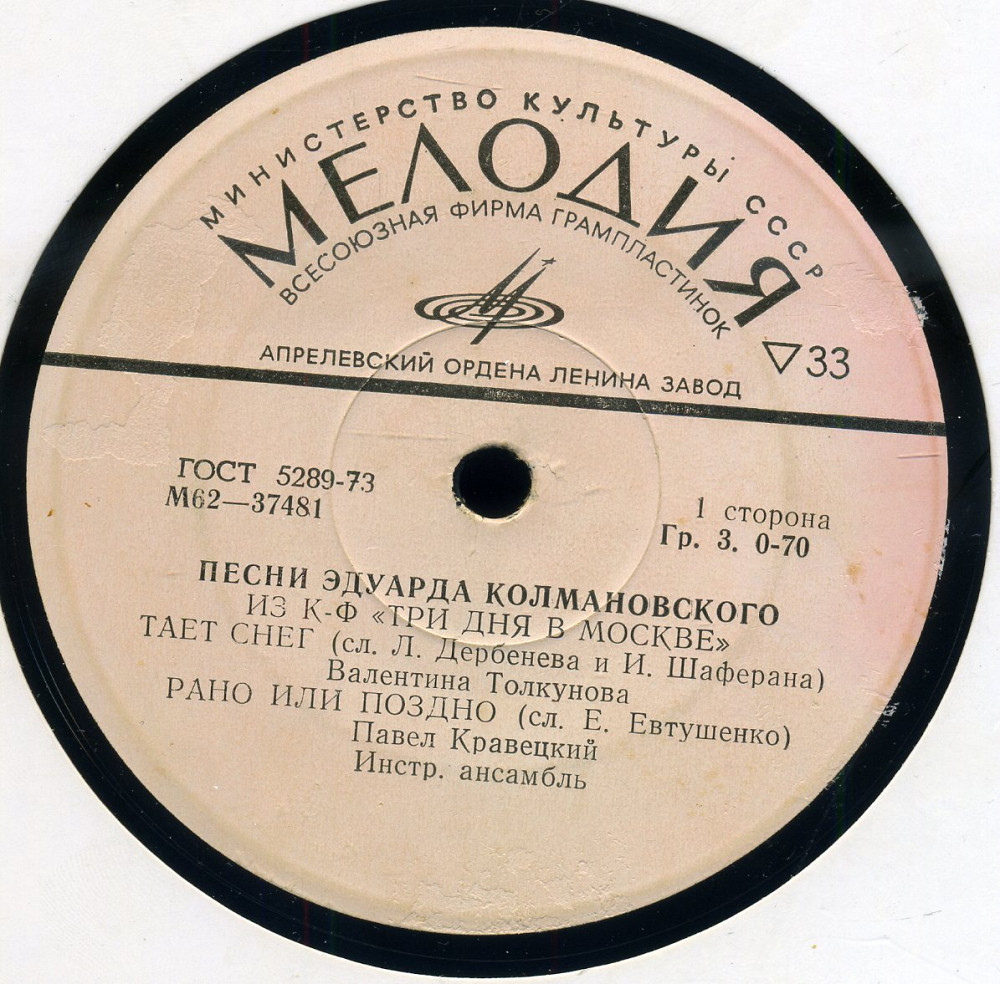 Эдуард Колмановский - Песни Эдуарда Колмановского (7") 1978 ЕХ