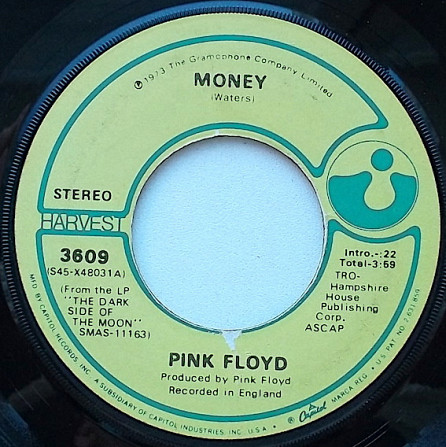 Pink Floyd ‎– Money / Any Colour You Like (Harvest ‎– 3609, 7", 45 rpm, single, USA, 1973).