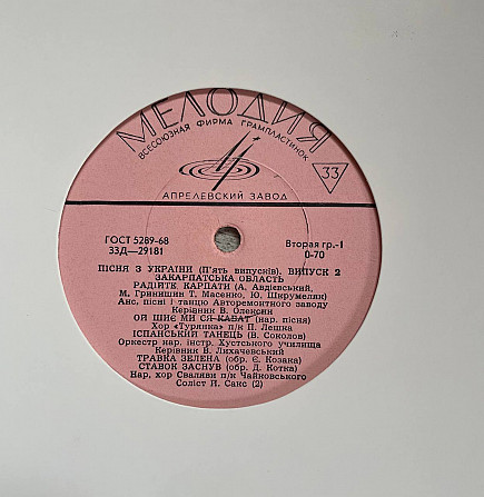 Пісня з України - Закарпатська область 10" LP