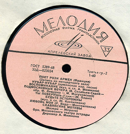 ПОЕТ РОЗИ АРМЕН (Франция) 33Д---023023_24 USSR