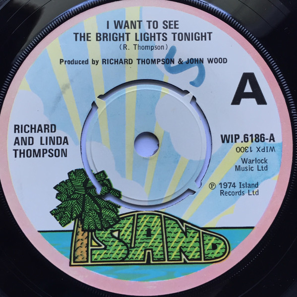 Richard & Linda Thompson – I Want To See The Bright Lights Tonight / When I Get To The Border (Island Records – WIP.6186, 7", 45 rpm, 4-prong centre, UK, 1974).