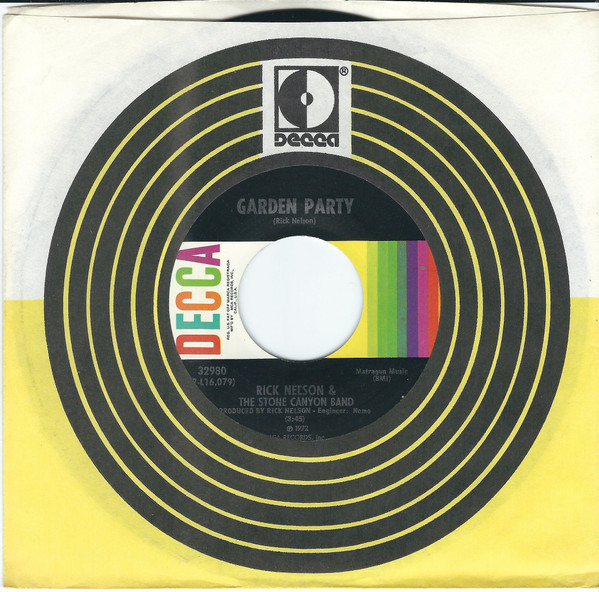 Rick Nelson & The Stone Canyon Band ‎– Garden Party / So Long Mama (Decca ‎– 32980, 7", 45 rpm, single, Pinckneyville, USA, 1972).