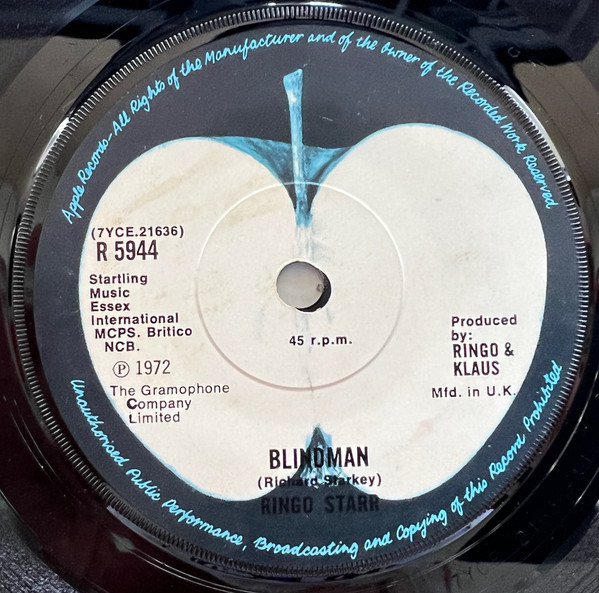 Ringo Starr – Back Off Boogaloo / Blindman (Apple Records – R 5944, 7", single, 45 rpm, UK, 1972)