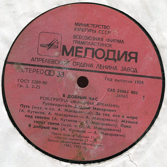 Рок-группа Машина Времени - В добрый час С60 24865_66 USSR 1986