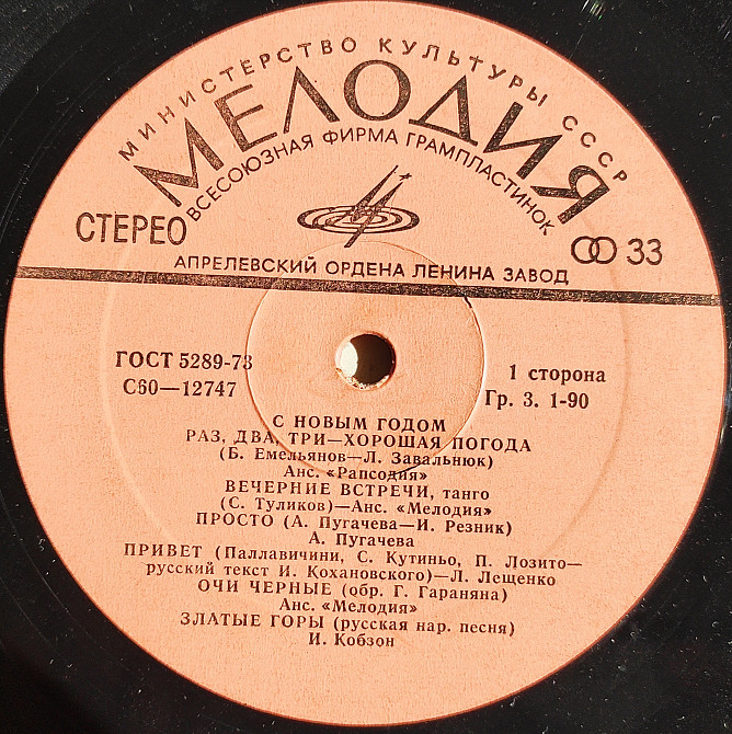 Год выпуска пластинки: