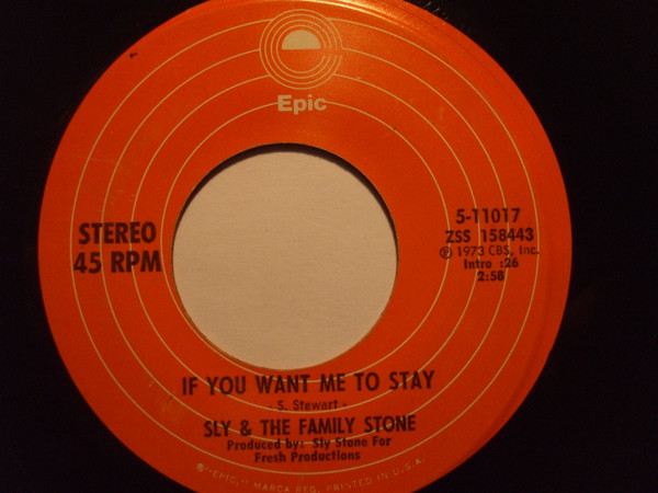 Sly & The Family Stone – If You Want Me To Stay / Babies Makin' Babies (Epic – 5-11017, 7", 45 rpm, USA, 1973).
