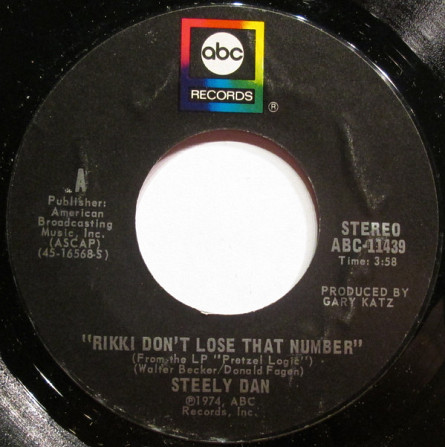 Steely Dan – Rikki Don't Lose That Number / Any Major Dude Will Tell You (ABC Records – ABC-11439, 7", 45 rpm, single, styrene, Terre Haute pressing, USA, 1974).